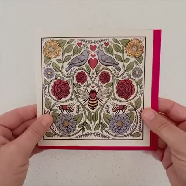 Birds and Bees Mothers Day card, Anniversary card, Birthday card. Treat your loved ones to this beautifully illustrated card. Free postage